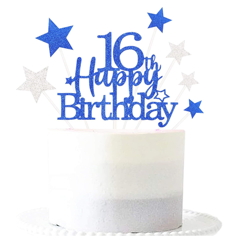 16 ° buon compleanno torta Topper con stella Cupcake topper torta Topper per ragazzi e ragazze 16 ° compleanno forniture per feste